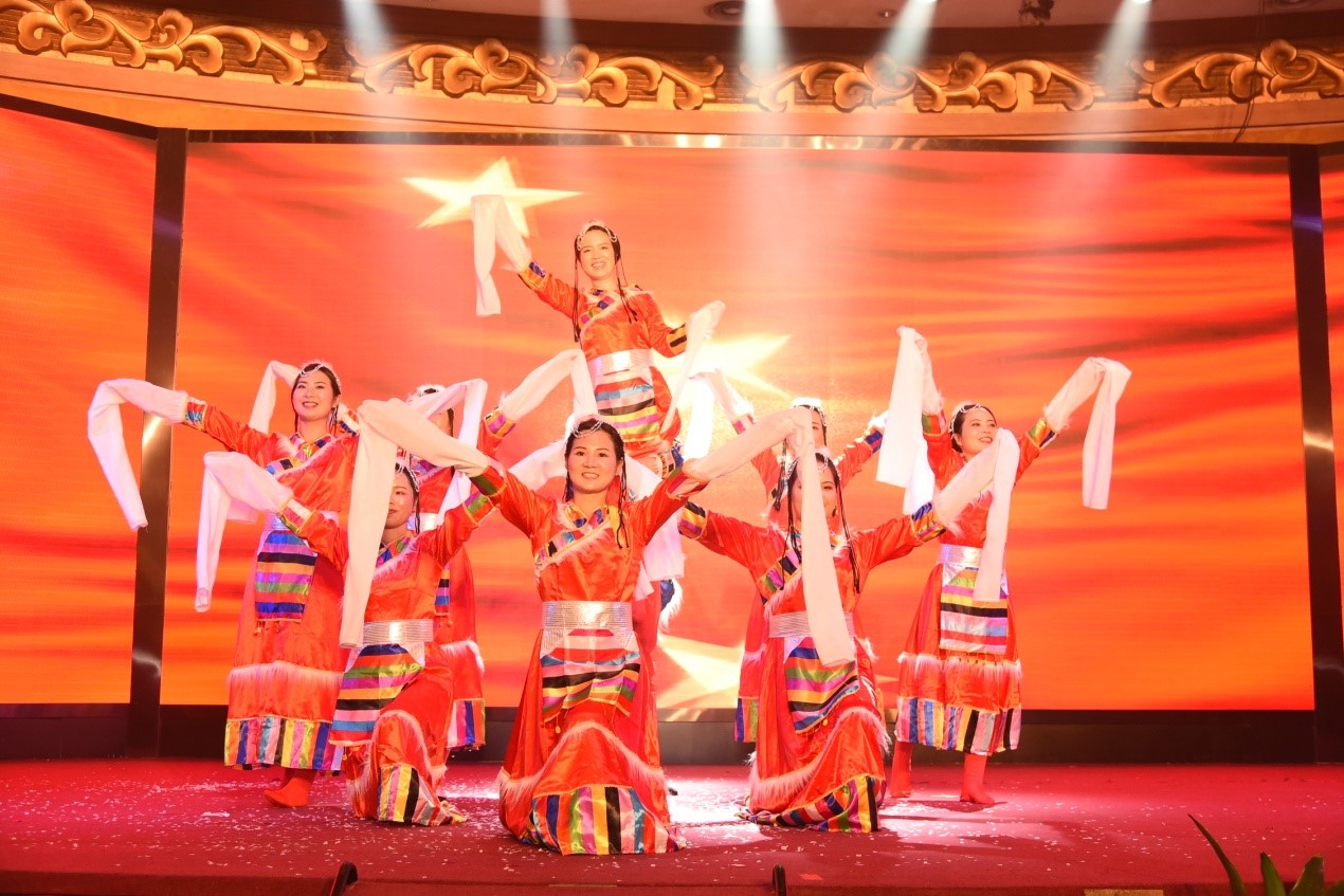 (图为公司员工舞蹈表演《唱支山歌给党听》)