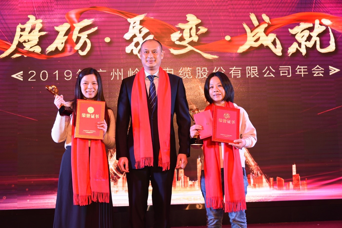 (图为获得“优秀干部奖”的员工与颁奖领导合影)